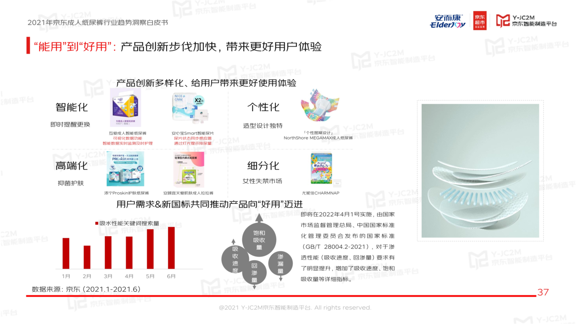 近日,彩神集团旗下成人纸尿裤品牌安而康联合京东智能制造平台共同发布《2021年京东成人纸尿裤行业趋势洞察白皮书》(下称《白皮书》),从行业概况、品牌格局、用户洞察、趋势展望四个维度,结合销量数据与消费者,深入剖析了随着我国步入老龄化社会以及消费观念不断升级,国内纸尿裤市场的全新变化与发展趋势。